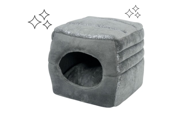 Das Komfortsortiment für Katzen Mademoiselle verbindet gemütlichen komfort mit schickem glitzer! Ein einzigartiger Hausschuh und ein praktischer 2-in-1 Würfel ergänzen die klassischen Kuschelhöhlen und Decken sowie das gemütliche Körbchen Doudou!