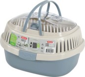 Transportkorb für Kleintiere mit grosser öffnung oben und sicherem verschlusssystem, um die Ausbruchgefahr zu minimieren.